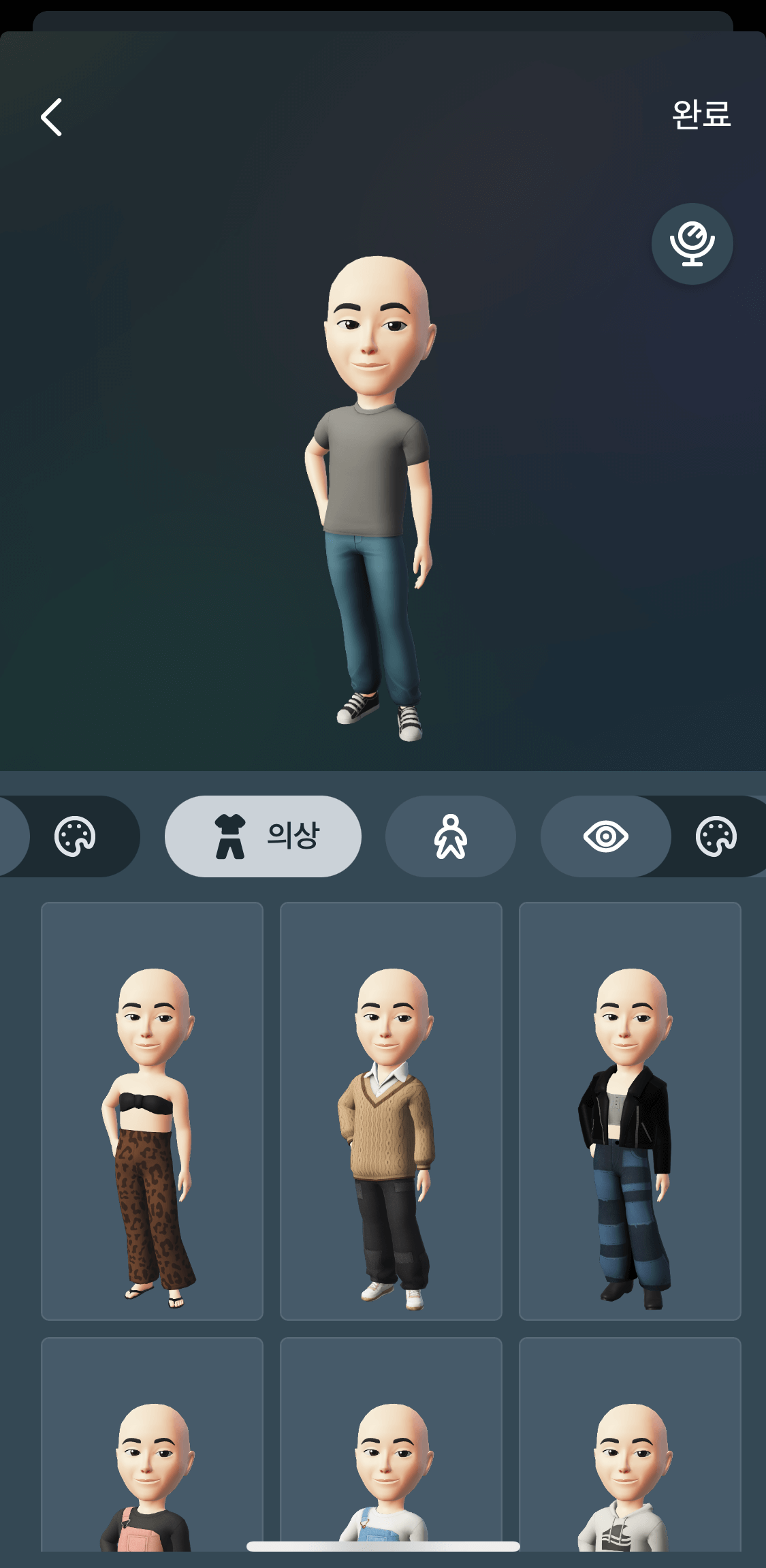 5. 아바타가 모두 생성되었으면 완료 버튼을 눌러 아바타를 저장하면 완료입니다.