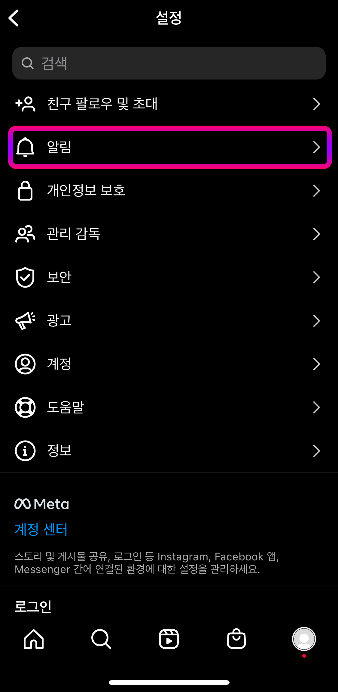 인스타그램 라이브방송 및 릴스 알림 끄기